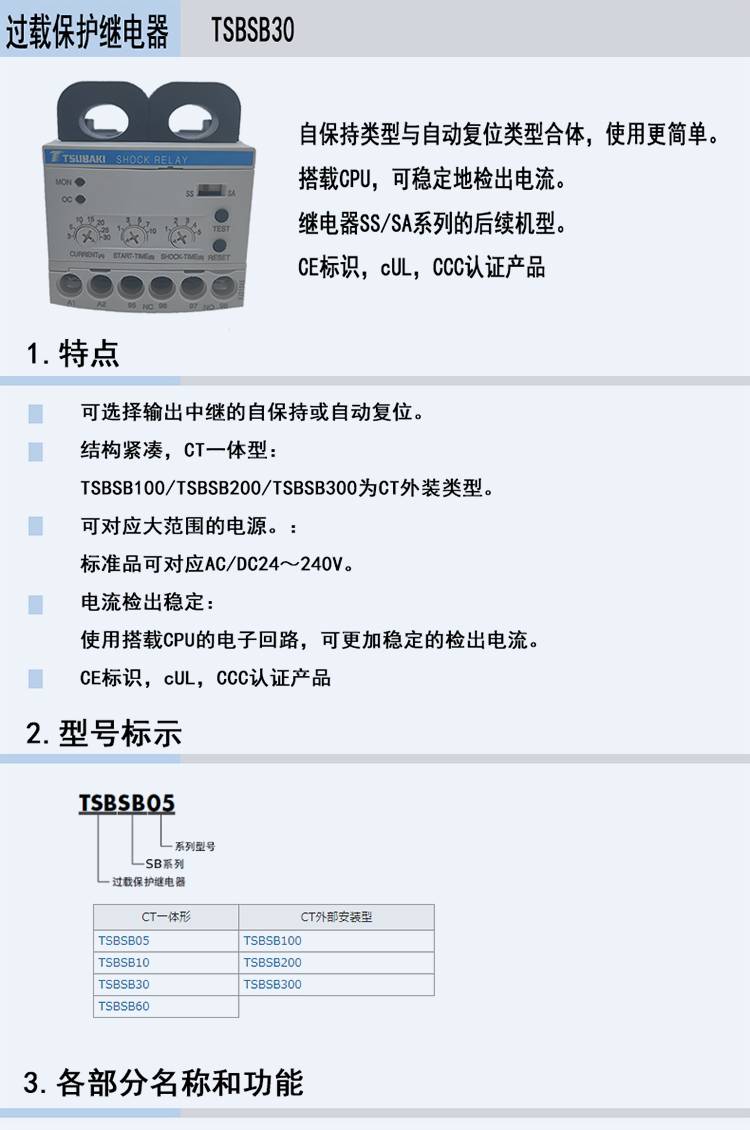 椿本Tsubaki 过载保护继电器SB系列TSBSB30原装进口